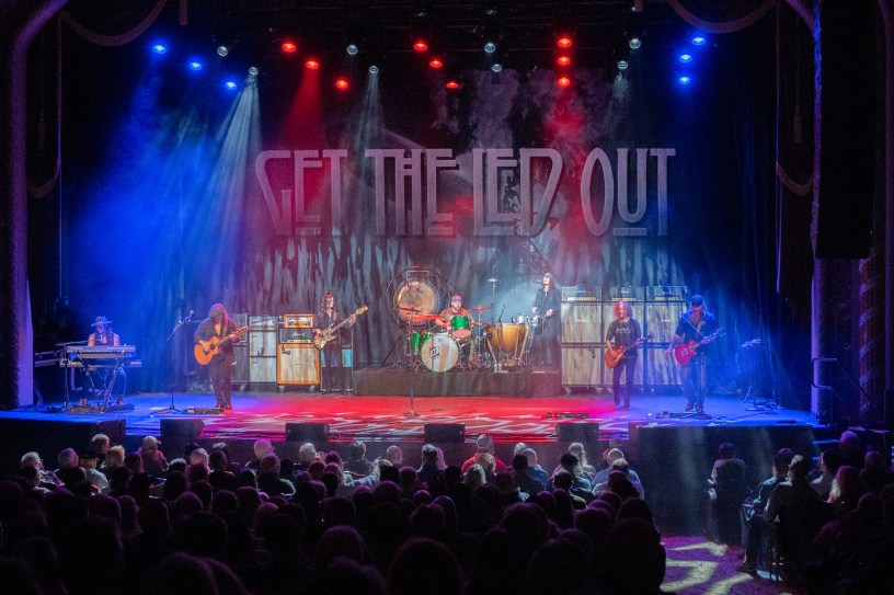 A weeknight with frigid January air would normally result in a ghost town-like facade in Newark, Ohio. On this night, however, an anxious crowd descended upon the historic Midland Theatre to catch Get The Led Out as the band made its “annual” tour stop at the venue. Dubbed as “A Celebration of the Mighty Zep,” the band was making its 14th appearance at the Midland to another sold out crowd eager to relive in some way moments of the past that Led Zeppelin’s music created for them.