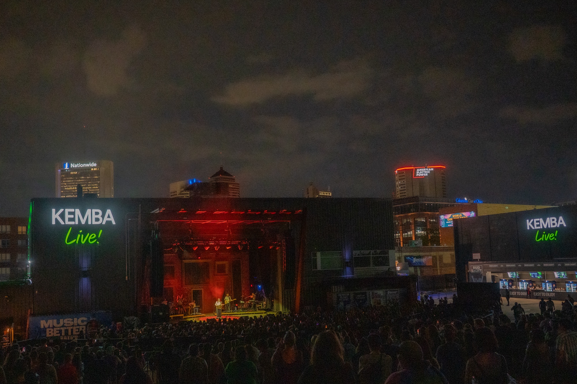 For those, including myself, seeking refuge in Kemba’s indoor venue the mood deepened as we witnessed roadies packing instruments and cables into boxes from the outdoor stage just beyond a huge black curtain.
