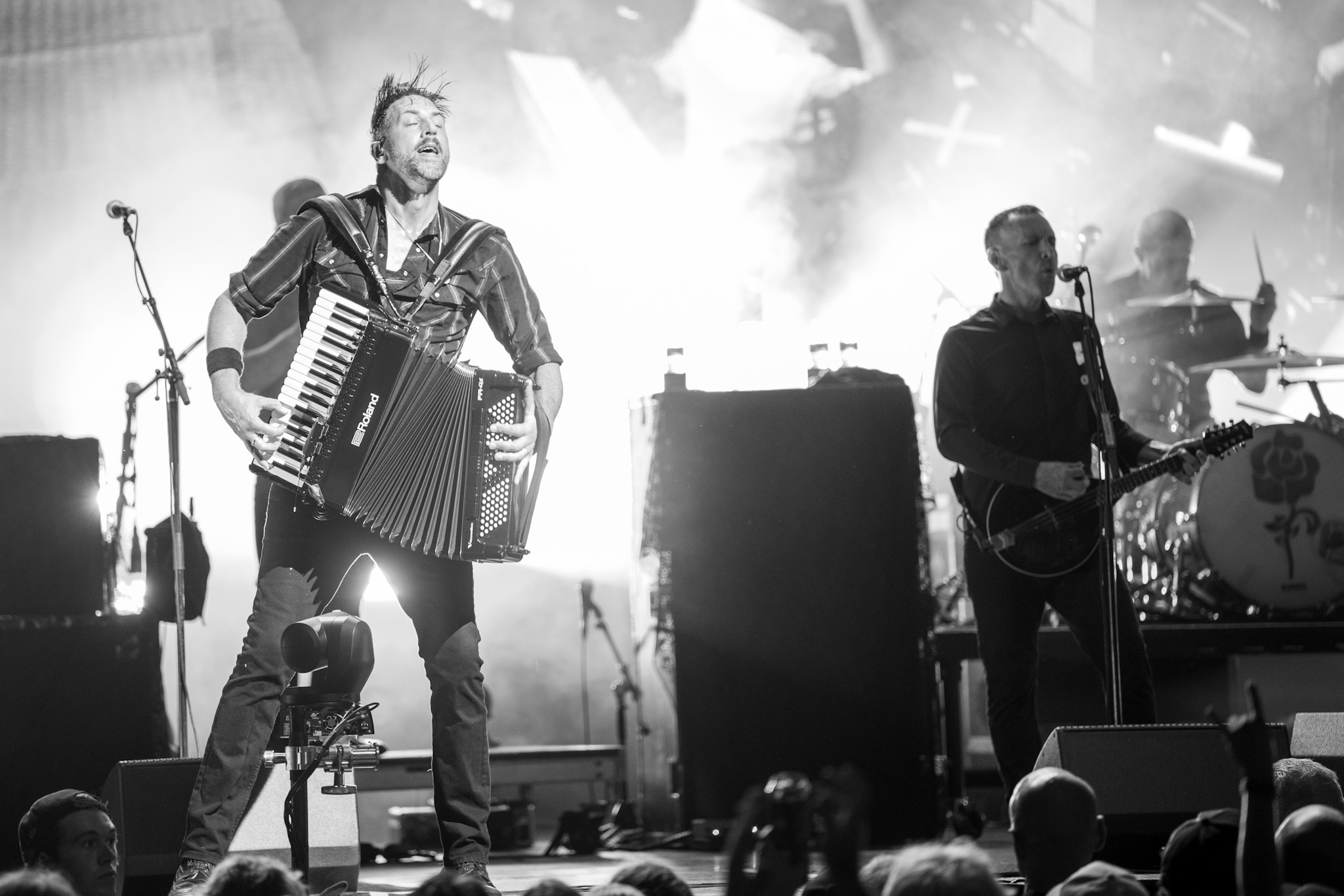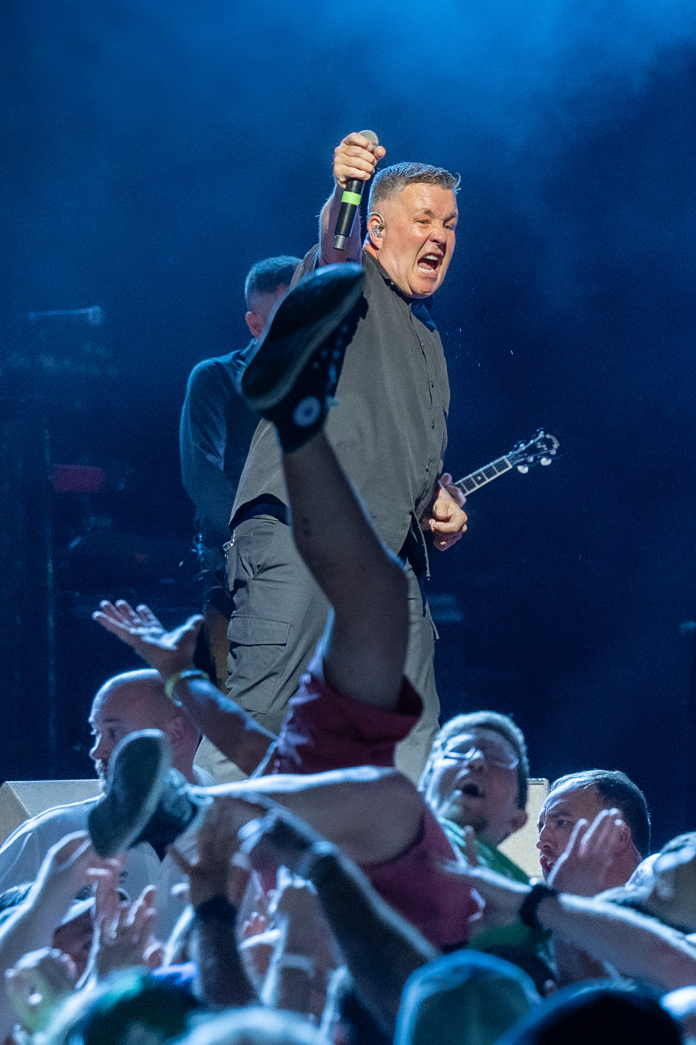 The final stage change ushered in Dropkick Murphys, who immediately shifted the tone from reflective to celebratory. With a thunderous wall of sound, they launched into their latest single “Who’ll Stand With Us” from their new album For The People. The crowd, clearly well-acquainted with the new material, responded with the same fervor reserved for the band’s most beloved songs. Across the new release’s 12 songs, Dropkick Murphys—Ken Casey (vocals), Tim Brennan (guitars, tin whistle, accordion, piano, vocals), Jeff DaRosa (guitars, banjo, mandolin, vocals), Matt Kelly (drums, percussion, vocals), James Lynch (guitars, vocals), Kevin Rheault (bass) and Campbell Webster (bagpipes and Uilleann pipes)—imbue the same kind of joy one might celebrate with family and friends. And even when the moods are sad and pensive, it’s hard not to feel personally invested in the band’s emotional spectrum.