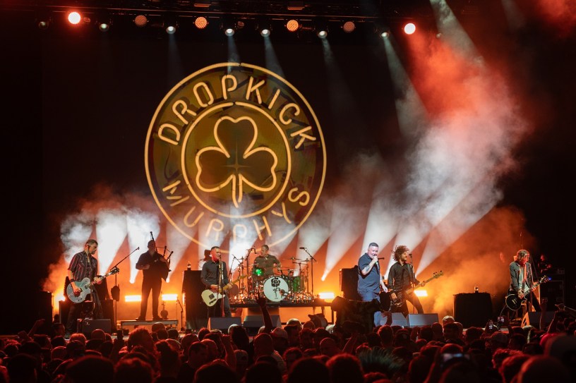 The final stage change ushered in Dropkick Murphys, who immediately shifted the tone from reflective to celebratory. With a thunderous wall of sound, they launched into their latest single “Who’ll Stand With Us” from their new album For The People. The crowd, clearly well-acquainted with the new material, responded with the same fervor reserved for the band’s most beloved songs. Across the new release’s 12 songs, Dropkick Murphys—Ken Casey (vocals), Tim Brennan (guitars, tin whistle, accordion, piano, vocals), Jeff DaRosa (guitars, banjo, mandolin, vocals), Matt Kelly (drums, percussion, vocals), James Lynch (guitars, vocals), Kevin Rheault (bass) and Campbell Webster (bagpipes and Uilleann pipes)—imbue the same kind of joy one might celebrate with family and friends. And even when the moods are sad and pensive, it’s hard not to feel personally invested in the band’s emotional spectrum.