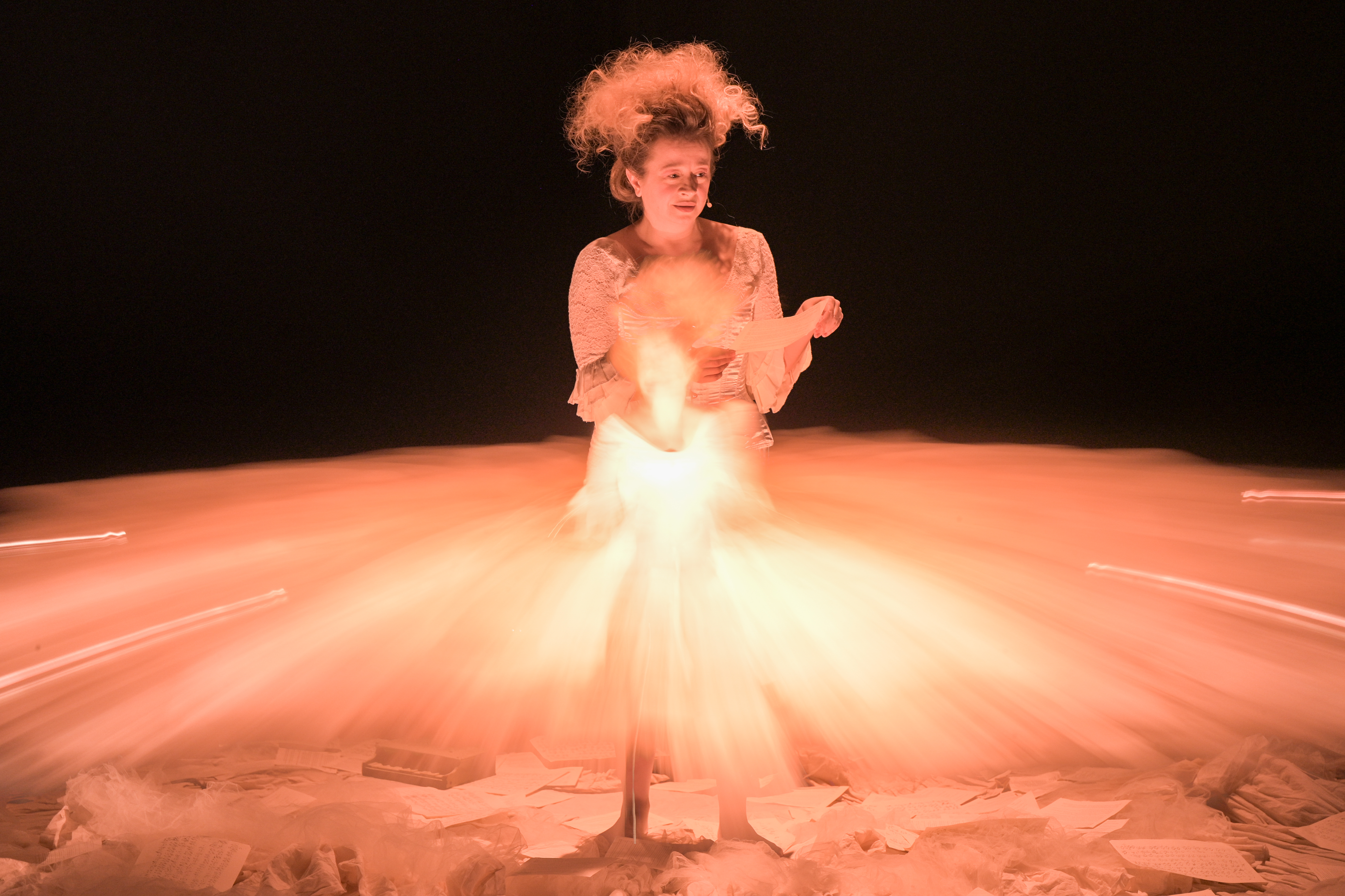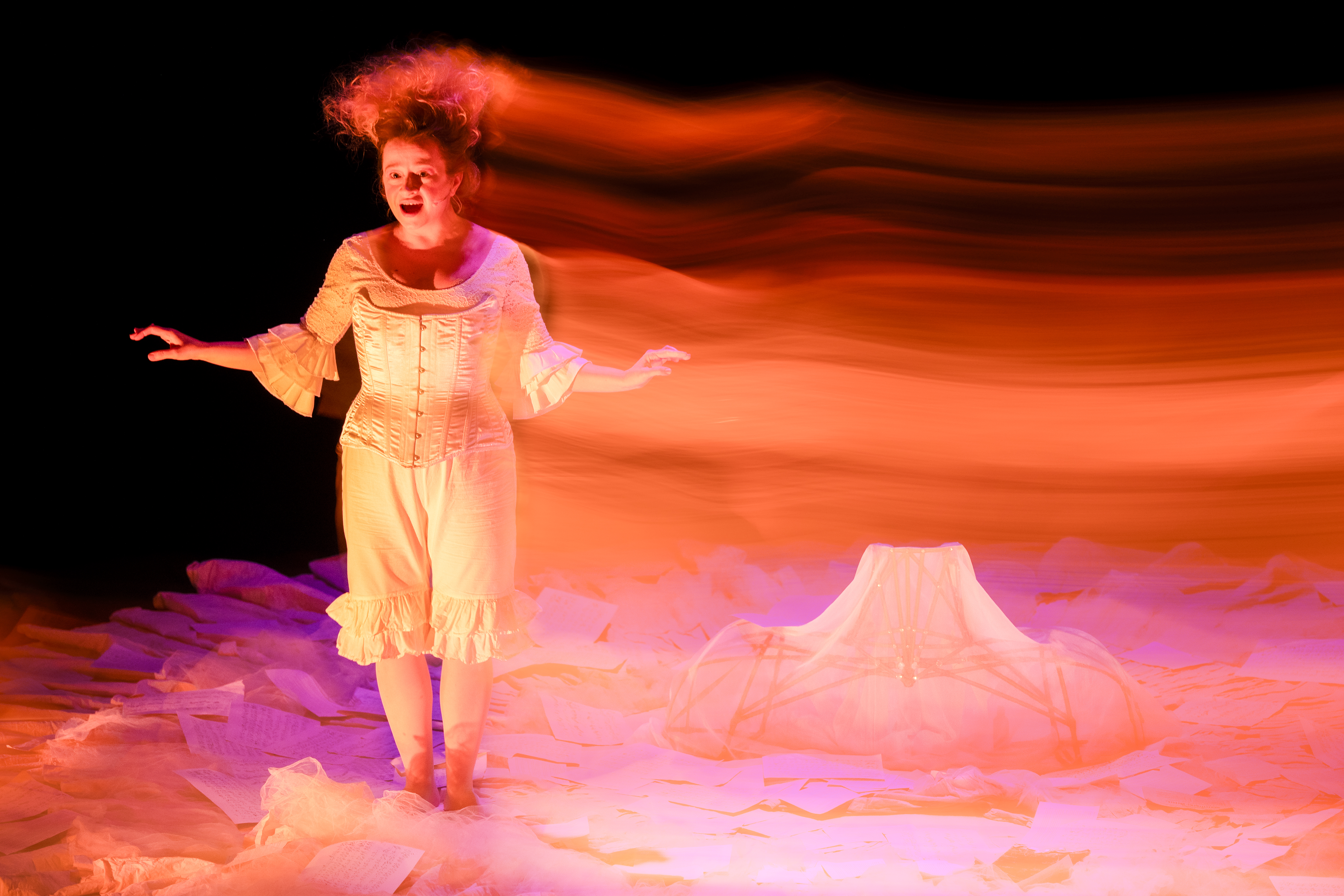 Through award-winning theater artist, playwright, and actress Sylvia Milo, however, Nunnerl Mozart’s story comes to life in this “multi-sensual” piece centered around an 18-foot dress. Period specific movement, fragrances, sounds, and subtle lighting effects created a truly engaging performance that wowed a packed Eisner Performing Center for the Arts crowd.